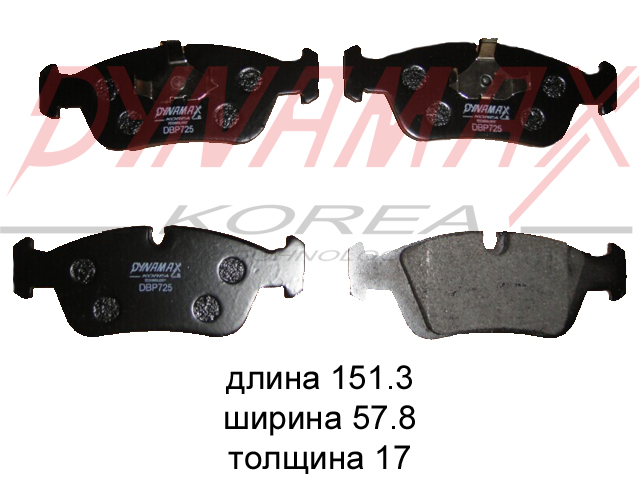 DBP725 DYNAMAX-KOREA комплект колодок для дисковых тормозов