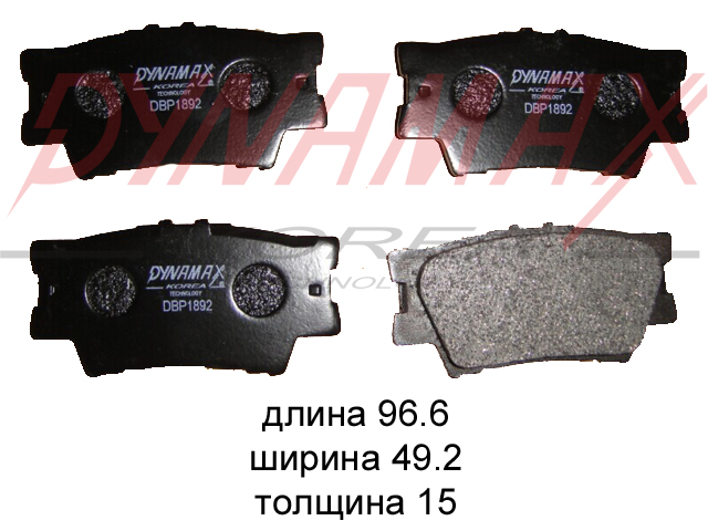 DBP1892 DYNAMAX-KOREA комплект колодок для дисковых тормозов